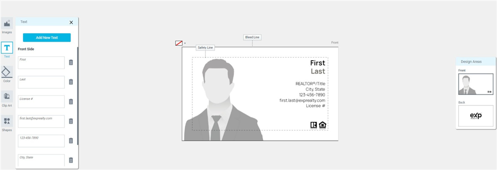 Yes, please send your business cards to marketing@exprealty.net and your state broker for branding and local compliance review and approval. To generate a proof for review/approval, make sure you have the design tool page open (as pictured below).